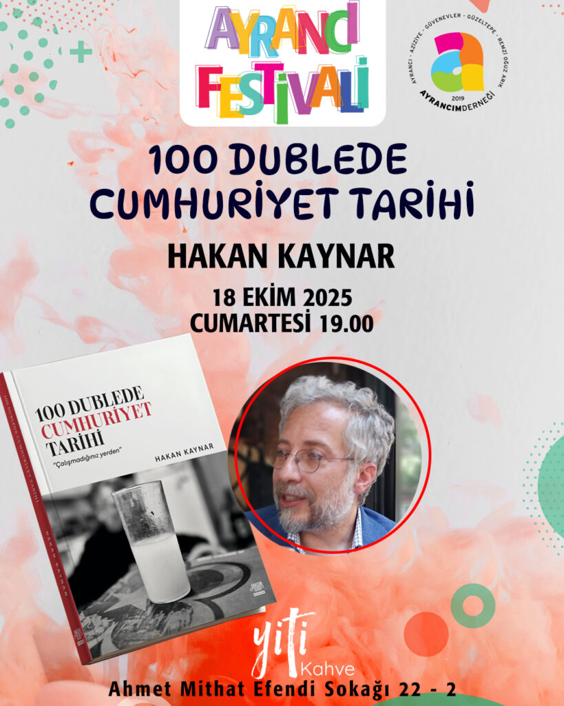 Hakan Kaynar, “100 Dublede Cumhuriyet Tarihi” adlı eseriyle okurlarıyla bir araya geliyor. Yazar, Ayrancım Festivali kapsamında düzenlenecek özel bir etkinlikte kitapseverlerle buluşacak.