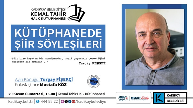 Türkiye Yazarlar Sendikası ve Kadıköy Belediyesi, şiir severleri bir araya getiren bir etkinliğe imza atıyor. “Şiir Söyleşisi” başlığı altında düzenlenecek olan bu etkinlik, 29 Kasım 2025 tarihinde Kemal Tahir Halk Kütüphanesi’nde gerçekleşecek. Saat 15:00’te başlayacak olan söyleşinin konuğu, Türk edebiyatının önemli isimlerinden Turgay Fişekçi olacak.