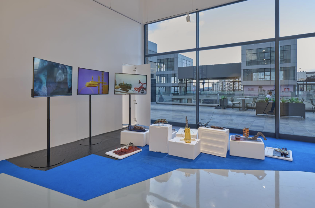 Serginin ilk bölümü olan “VarYok: Canlı”, 11 Ekim 2025 – 1 Şubat 2026 tarihleri arasında görülebilecek. Bu bölümde, mimarlık tarihçisi Gürbey Hiz’in Servet-i Fünûn dergisinden ilham alarak oluşturduğu eleştirel modernite atlasından bir seçki, sanatçı Emre Hüner’in “Neochronophobiq” (2015) adlı videosu ve bu video için tasarladığı seramik figürlerle bir araya geliyor. Hiz, geç Osmanlı dönemine ait bir yayından yola çıkarak, ilerlemeci bir gelecek vizyonunu, evden sokağa, gökyüzünden yeraltına uzanan sahnelerle aktarıyor. Hüner’in arkeolojik buluntuları andıran heykellerinde ise, çene ve omurga kemiklerine benzer ilkel aletler, hayvan fosilleri, işlevi belirsiz ritüel nesneleri, meteor parçaları ve menhirleri çağrıştıran formlar, barındıkları mimari yapılarla birlikte sergileniyor. YUNT’taki enstalasyonda, videodan bağımsızlaşan bu karakterler, farklı bir zaman veya mekanda devam eden yaşamları temsil ediyor.