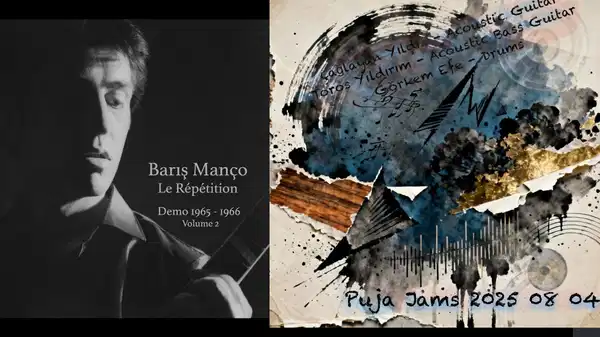 Puja Jams’in “2025 08 04” adlı çalışması, tek parça olmasına rağmen 29 dakika sürmesi nedeniyle bir albüm olarak değerlendirilmeyi hak ediyor. Hem ruhu hem de konsepti itibarıyla bu eser, tam anlamıyla bir albüm niteliği taşıyor. Çalındığı tarihi belirten adıyla dikkat çeken albüm, Çağlayan Yıldız’ın akustik gitarı, Toros Yıldırım’ın akustik perdesiz bası ve Görkem Efe’nin davuluyla hayat bulmuş. Kayıtlar, Çağlayan Yıldız’ın Antalya’daki stüdyosunda gerçekleştirilmiş. Puja Jams projesi, adından da anlaşılacağı gibi, müzisyenlerin herhangi bir yazılı notasyona bağlı kalmadan, jam kültürünün özgür atmosferinde bir araya gelerek içlerinden geldiği gibi doğaçlama çalmalarıyla ortaya çıkardıkları kayıtlardan oluşuyor. Bu çalışma, modal atmosferli özgür caz olarak tanımlanabilir. Dijital platformlarda yayınlanan bu komplike eser, 1970’lerin uhrevi füzyon müzik oturumlarını anımsatıyor; son derece hipnotik ve rafine bir müzik deneyimi sunuyor. Bu proje bir ilk olma özelliği taşıyor ve farklı müzisyenlerle devam edecek bir seri olarak planlanıyor. Anın icrasına odaklanarak yeni keşiflere olanak tanıyacak olan bu çalışma, ana akım müzik dışında üretim yapan müzisyenler için önemli bir fırsat sunuyor. Kayıtta kullanılan akustik gitar ve perdesiz akustik basın yapımcısı olan ve yakın zamanda vefat eden lutiye Murat Sezen’e ithaf edilmiş olması, eserin değerini daha da artırıyor.